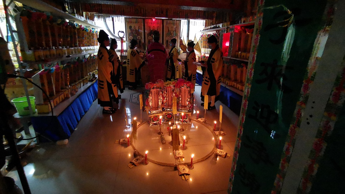 本壇經師於五天法會誦經禮懺,唸誦度亡科儀經典,大放先天濟煉斛食幽科,